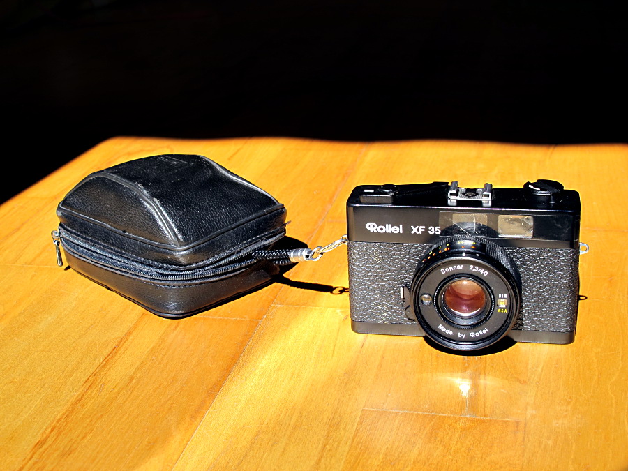 Kleinbildkamera XF 35 der Firma Rollei mit Fototasche, hergestellt Ende der 70er Jahre