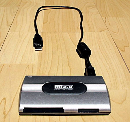 Sie erhalten einen gut erhaltenen und voll funktionsfähigen USB 2.0 Multislot-Kartenleser mit vier Slots für sechs verschiedene Kartentypen.