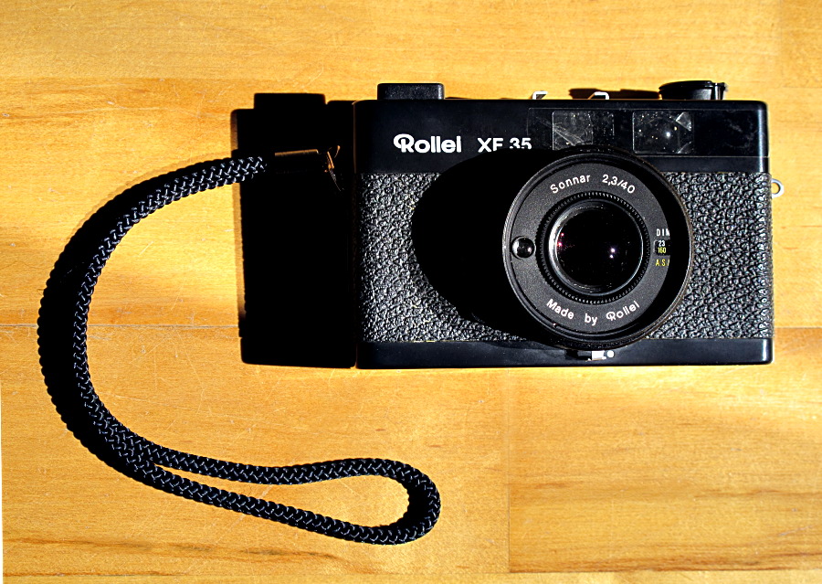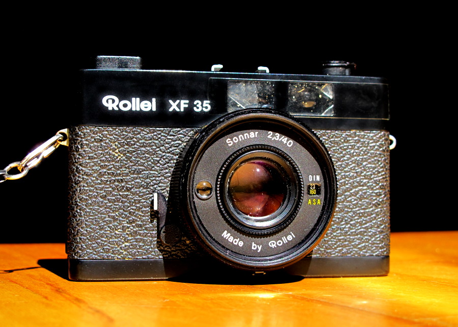Kleinbildkamera XF 35 der Firma Rollei mit Fototasche, hergestellt Ende der 70er Jahre